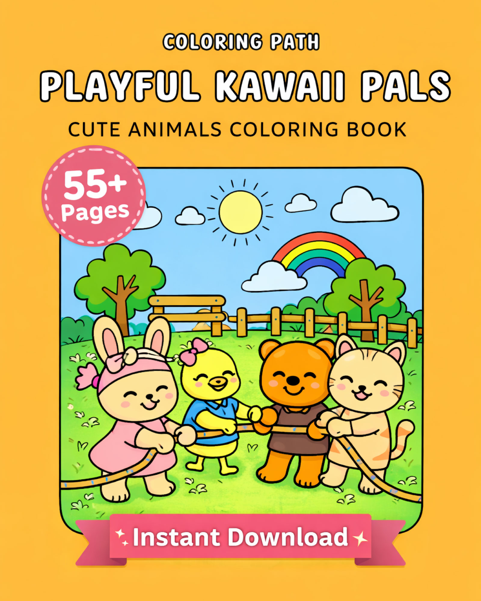 Playful Kawaii Pals is a charming and relaxing coloring book filled with adorable kawaii-style animal characters. Designed for both kids and adults, each page offers a fun and calming coloring experience that’s perfect for creative breaks, relaxation or quality family time.